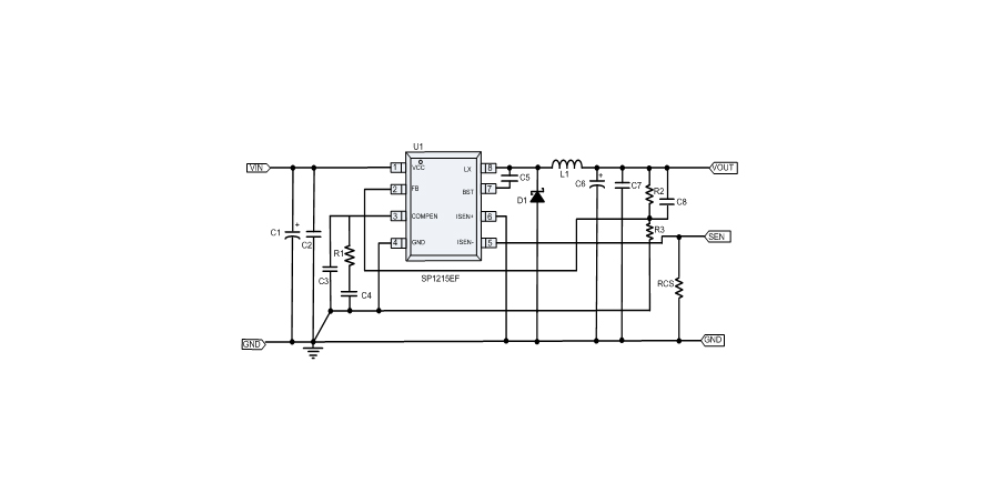 SP1215EF是一款降壓型PWM轉(zhuǎn)換器,典型輸出驅(qū)動電流為3.5A無需外加晶體管。設(shè)計允許它可在8V~40V的寬輸入電壓下工作。通過將COMP/EN腳邏輯電平拉低來控制外部關(guān)斷功能,使其進(jìn)入待機(jī)模式。外部補(bǔ)償使反饋控制具有良好的線電壓調(diào)整率和負(fù)載調(diào)整率,具有靈活的外圍設(shè)計。