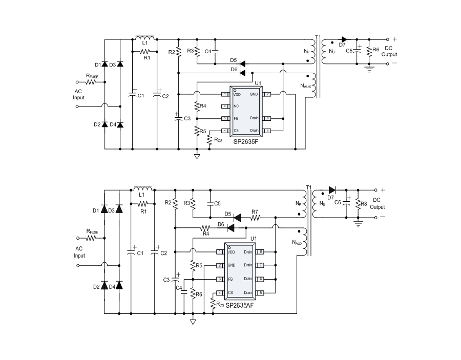 SP2635F是一款性能優(yōu)異的原邊反饋控制電路,應(yīng)用于小功率AC/DC充電器與適配器??刂齐娐肥褂迷叢蓸蛹夹g(shù)進(jìn)行精確的恒流、恒壓控制,可以省去一般應(yīng)用中的光耦與TL431。