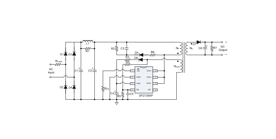 SP2739AP是一款性能優(yōu)異的原邊反饋控制電路,應(yīng)用于中、小功率AC/DC充電器與適配器??刂齐娐肥褂迷叢蓸蛹夹g(shù)進(jìn)行精確的恒流、恒壓控制,可以省去一般應(yīng)用中的光耦與TL431。
